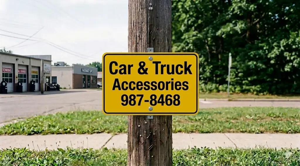 Using the same sign-making equipment he had already been running through AutoGraphics, he turned sunroof scrap into signs reading “Car & Truck Accessories” with his phone number. He posted them heavily throughout the area. They worked immediately.
